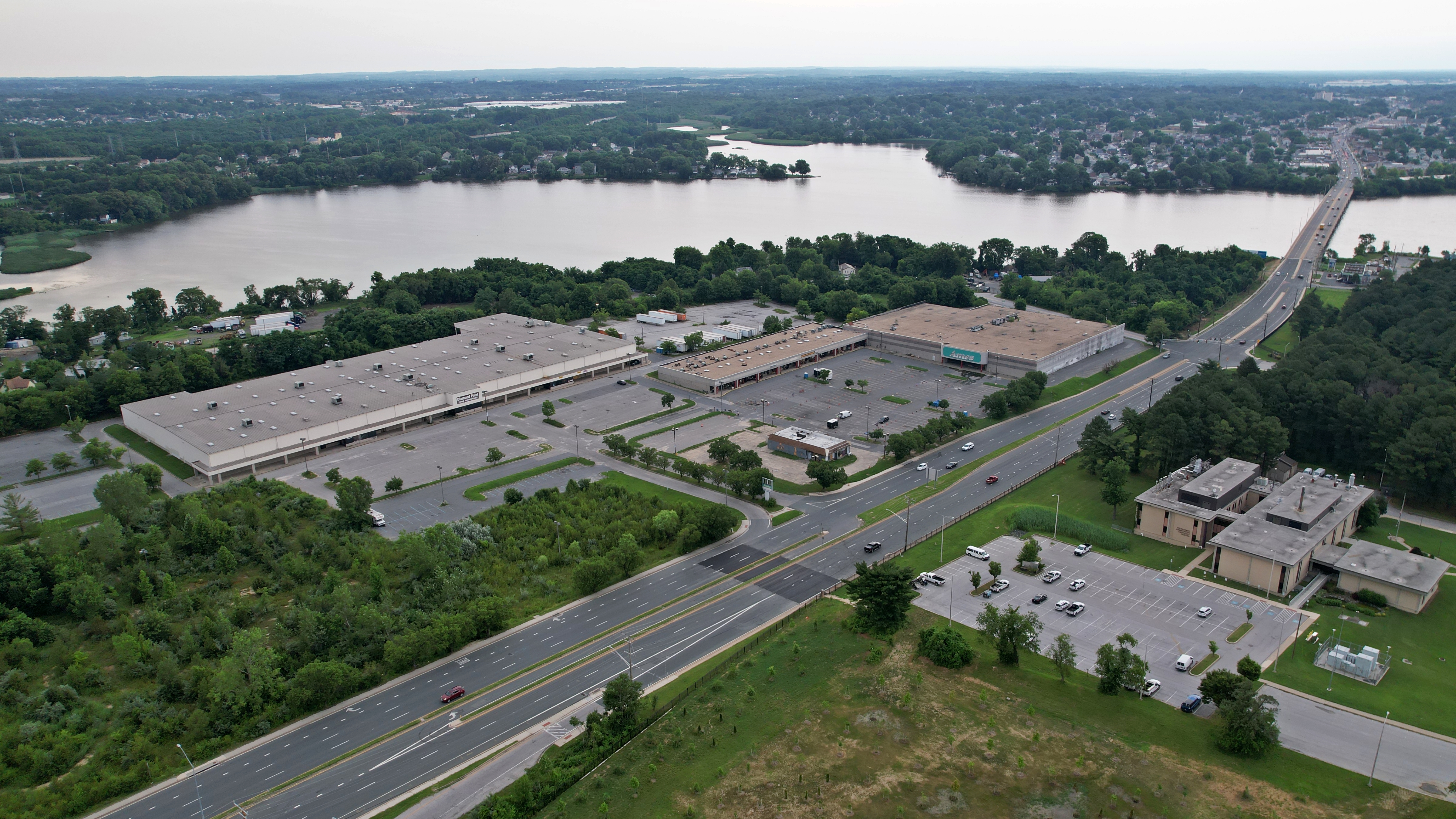 Aerial view of Diamond Point Plaza, a largely disused shopping center along Eastern Avenue, just outside the city limits of Baltimore, Maryland.
