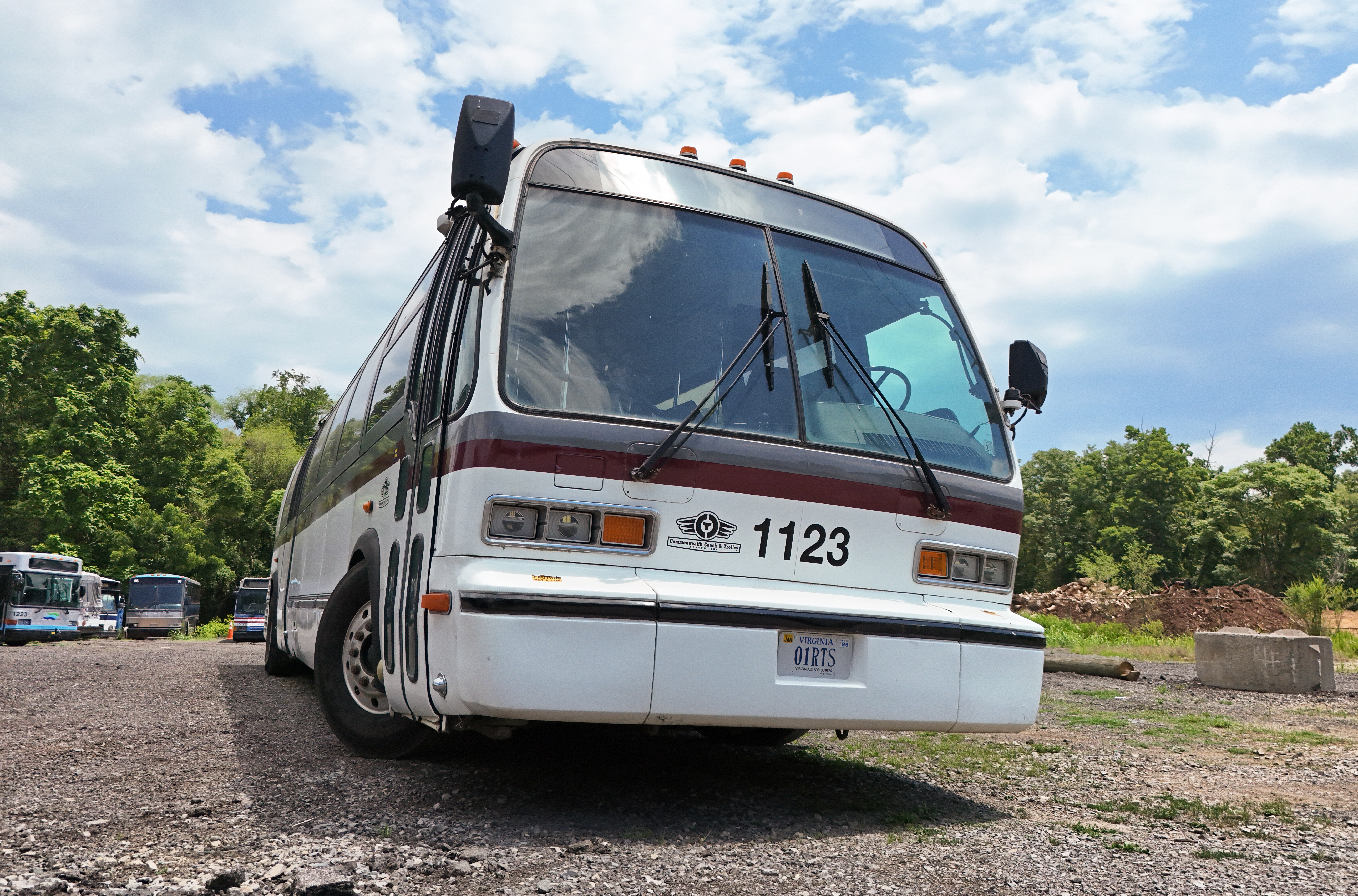 Former Texas A&M bus 1123, a 2001 NovaBus RTS, now in the collection of Commonwealth Coach & Trolley, a Roanoke, Virginia museum dedicated to the preservation of historic transit buses and motorcoaches.