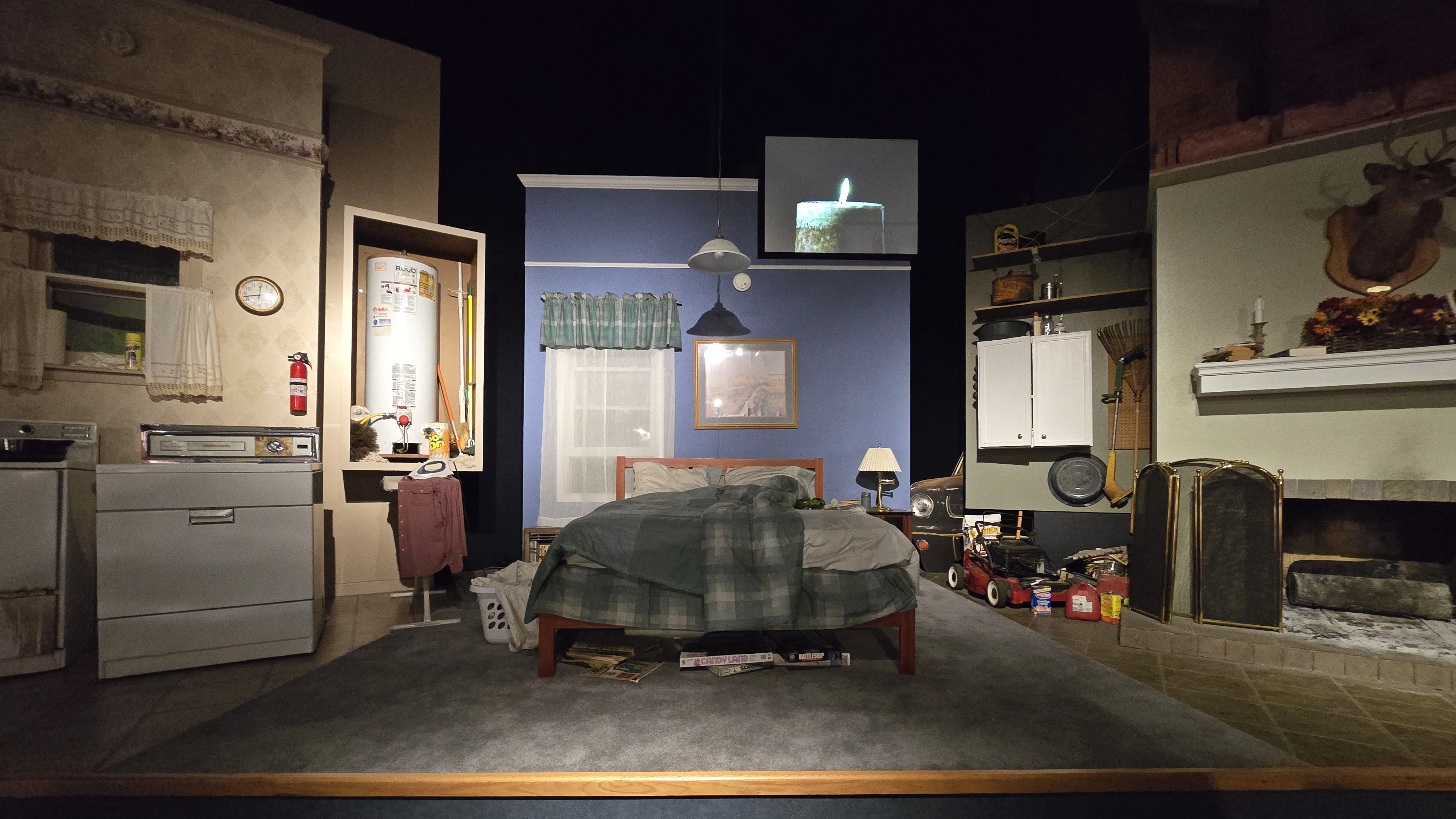 Automated demonstration on a stage showing all of the different kinds of potential fire hazards in a house at the North Charleston Fire Museum, a museum about fires and the fire service at 4975 Centre Pointe Drive in North Charleston, South Carolina.