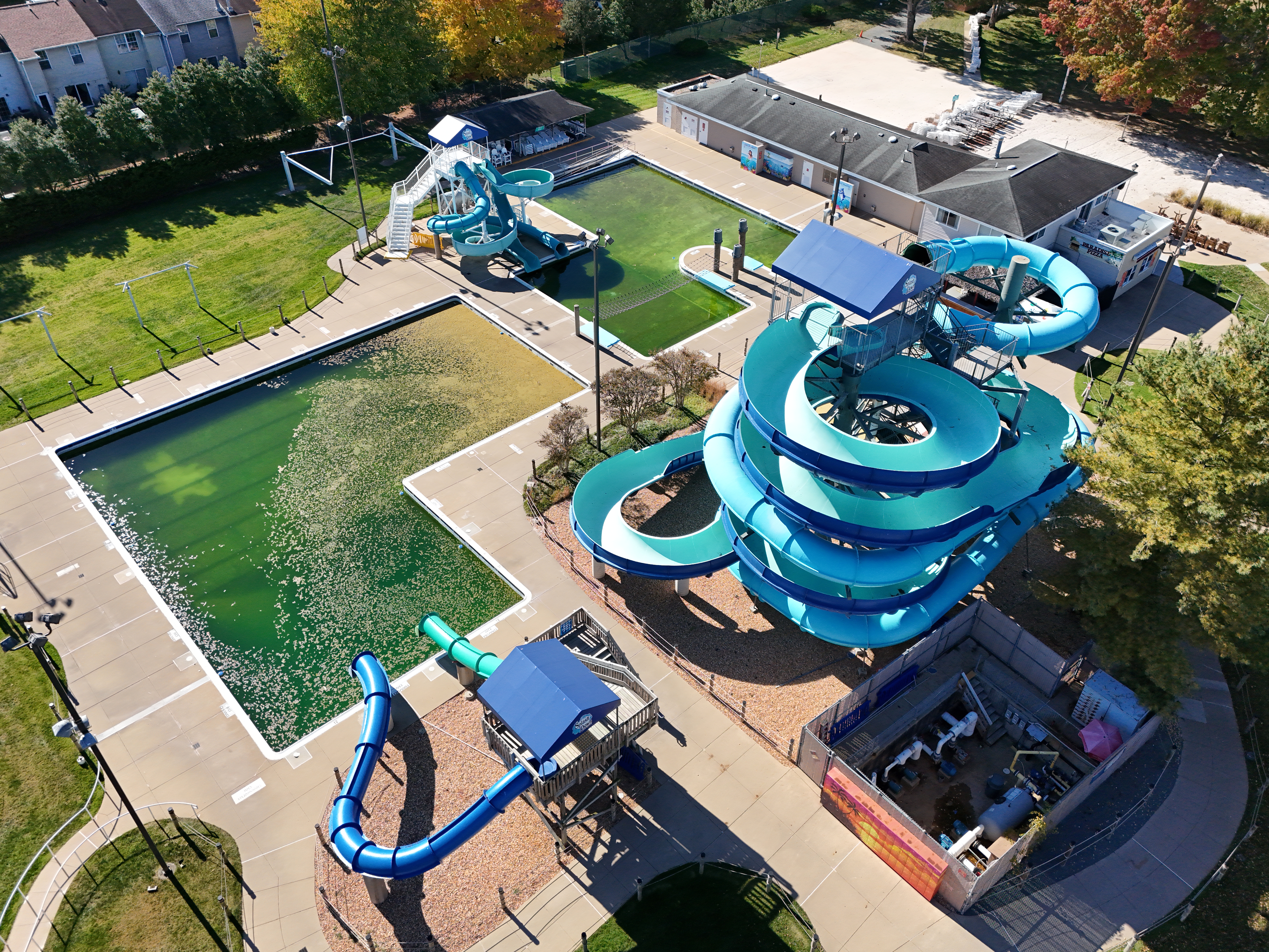 SplashDown Waterpark, a swimming pool and water park near Manassas, Virginia, which operates from late May to early September. These photos, taken during the off-season, show a park in slumber, as the water levels in the pools are somewhat lower, and the water is allowed to turn green.