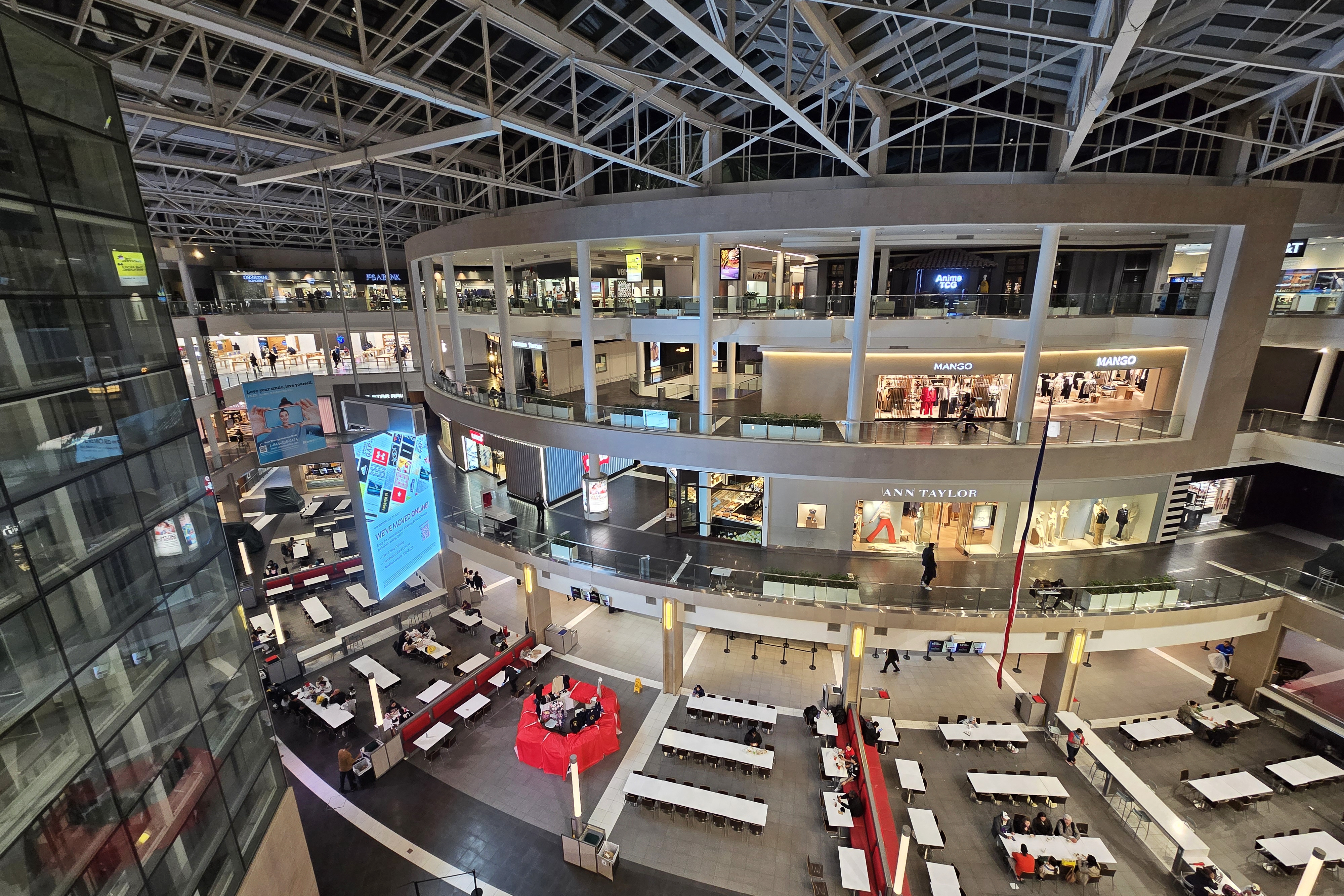 Main atrium at the Fashion Centre at Pentagon City, also known as Pentagon City Mall, an enclosed shopping center in Arlington, Virginia.