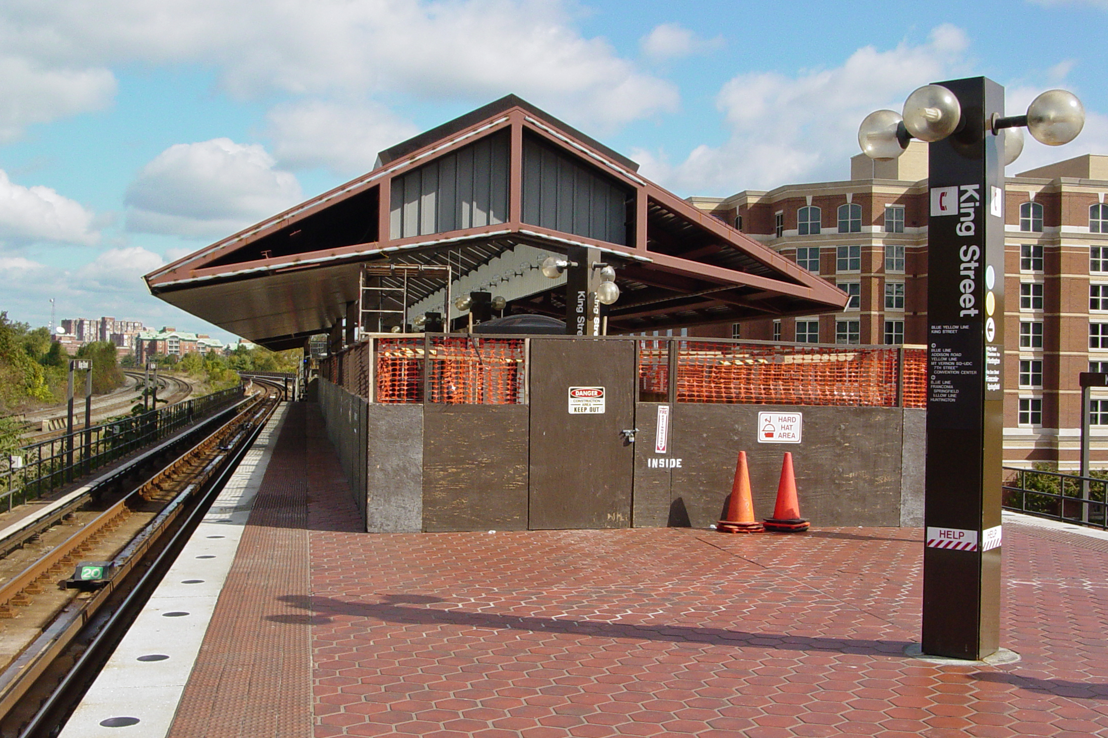 Canopy under construction at the north end of King Street, a Washington Metro station in Alexandria, Virginia. This second canopy was built during a project that added a second entrance to the station at its north end, opening onto Commonwealth Avenue.