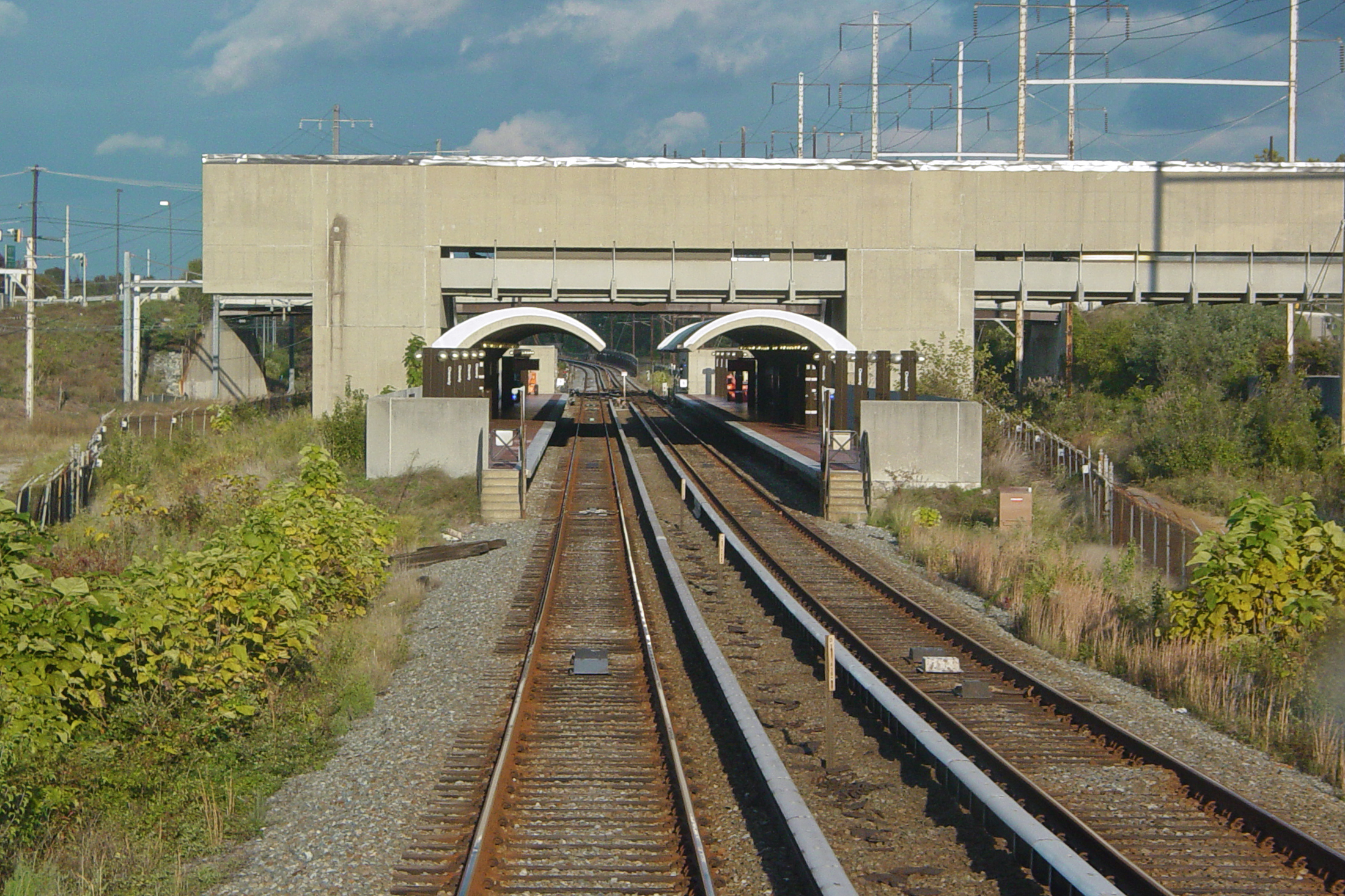 Cheverly, a Washington Metro Orange Line station in Prince George's County, Maryland. View from down the track, west of the station.