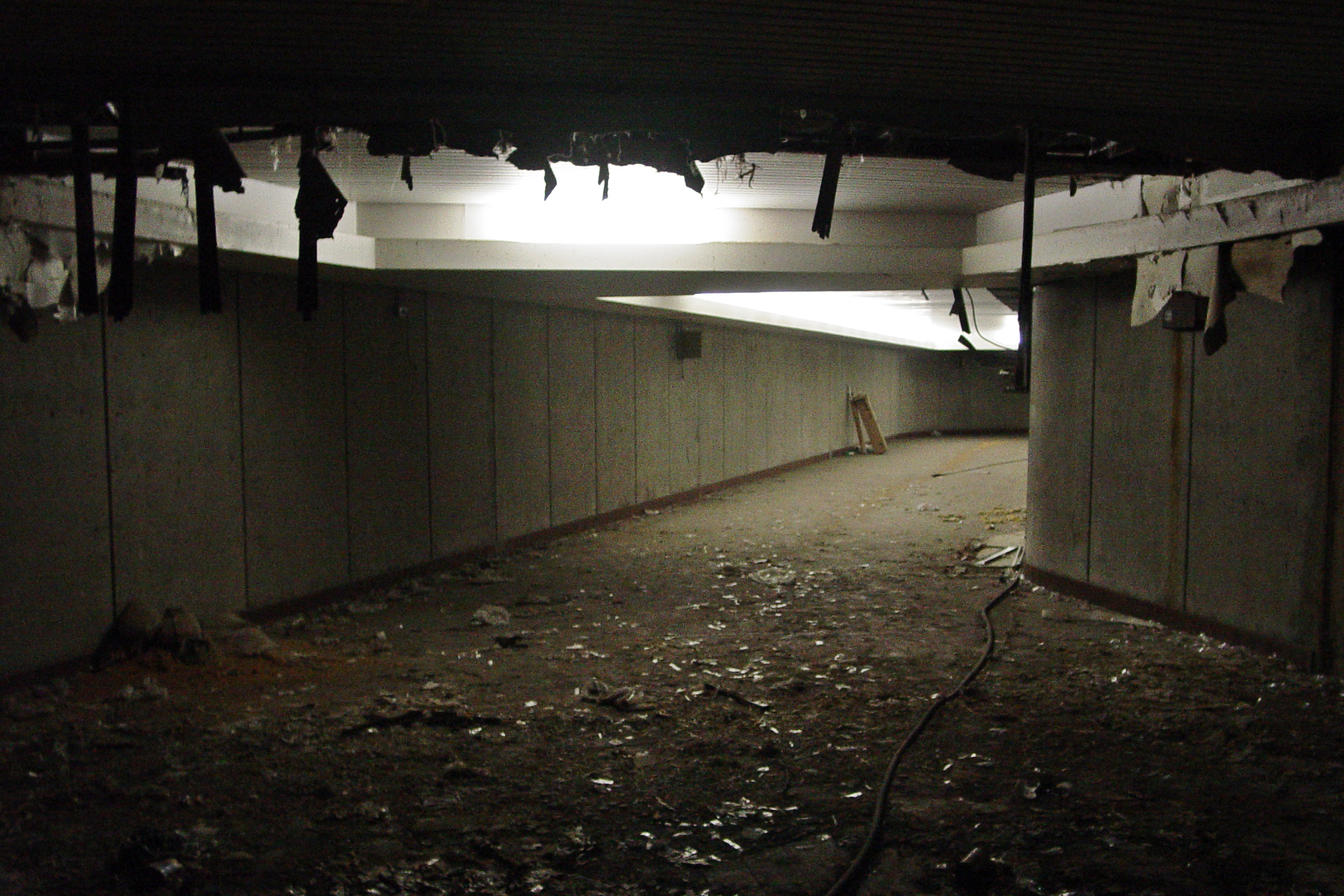 Interior of a disused pedestrian tunnel that connects the northeast corner of the intersection of South Hayes Street and 12th Street South with the Pentagon City Metro station. While this county-owned tunnel was built with the Metro station, it remained unused for decades, before finally opening to the public in 2017 following a refurbishment.